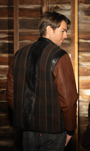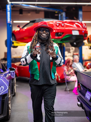 LL Cool J in our men's Black Leather military bomber jacket backstage for an awards show in Hollywood, California