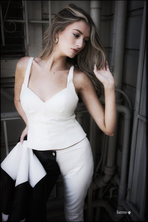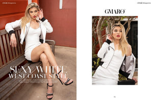 Designer Candice Cuoco first started her production for her collections with Fashion Director Skip Pas in 2015 and later appeared on Project Runway. This photo was requested by Vogue Magazine to show how we had one design from Candice and One from West Coast Leather which was our long white leather seven eights coat and her skirts with a flair and fantail made the magazine. Thanks to Candice for adding us to all her fashion that year stories and editorials that year.